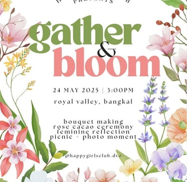 Gather & Bloom is a feminine picnic experience inspired by Flores de Mayo, designed to honor softness and a like-minded community. Held in Royal Valley, Bangkal, the event offers a space to reconnect with yourself and others through beauty and intention.
